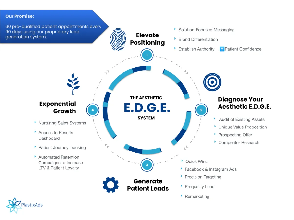 That’s Where our 4-Step Aesthetic E.D.G.E.™ Patient Acquisition System Comes In.